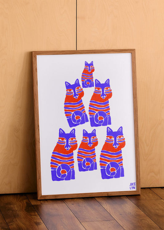 Upptäck vår charmiga kollektion av katttavlor – perfekta för att hylla våra fyrbenta vänner! Varje tavla fångar kattens själ, från deras busiga upptåg till deras rofyllda betraktelser. Välj bland illustrationer, finare konsttryck och handmålade stil motiv – alla designade med kärlek av svenska och internationella konstnärer. Vill du skapa en varm, inbjudande atmosfär i ditt hem är dessa posters ett självklart val för kattälskare och konstfantaster.