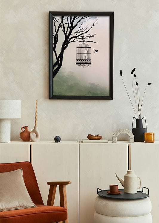 Tavelvägg i beiga toner där alla motiv har en inneboende stämning av frihet och refklektion. Perfekt tavelvägg för dig som vill komma till ro och låta tankarna sväva fritt.