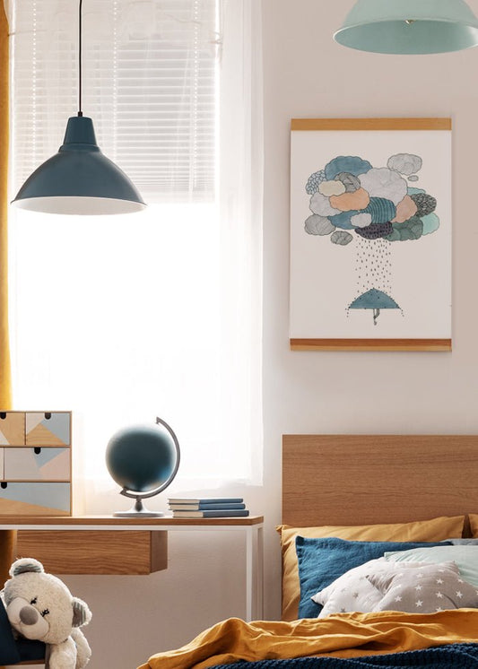 Inred med mönster. Här kommer en tavelvägg som mixar ränder på höjden och bredden. Lekfulla motiv med bland annat Morgonkopp av Linda Ljunggren Norberg, samt Klumpen i skogen av Evelina Viola. Motiv som får dig att titta en extra gång för att hitta alla finurliga detaljer.