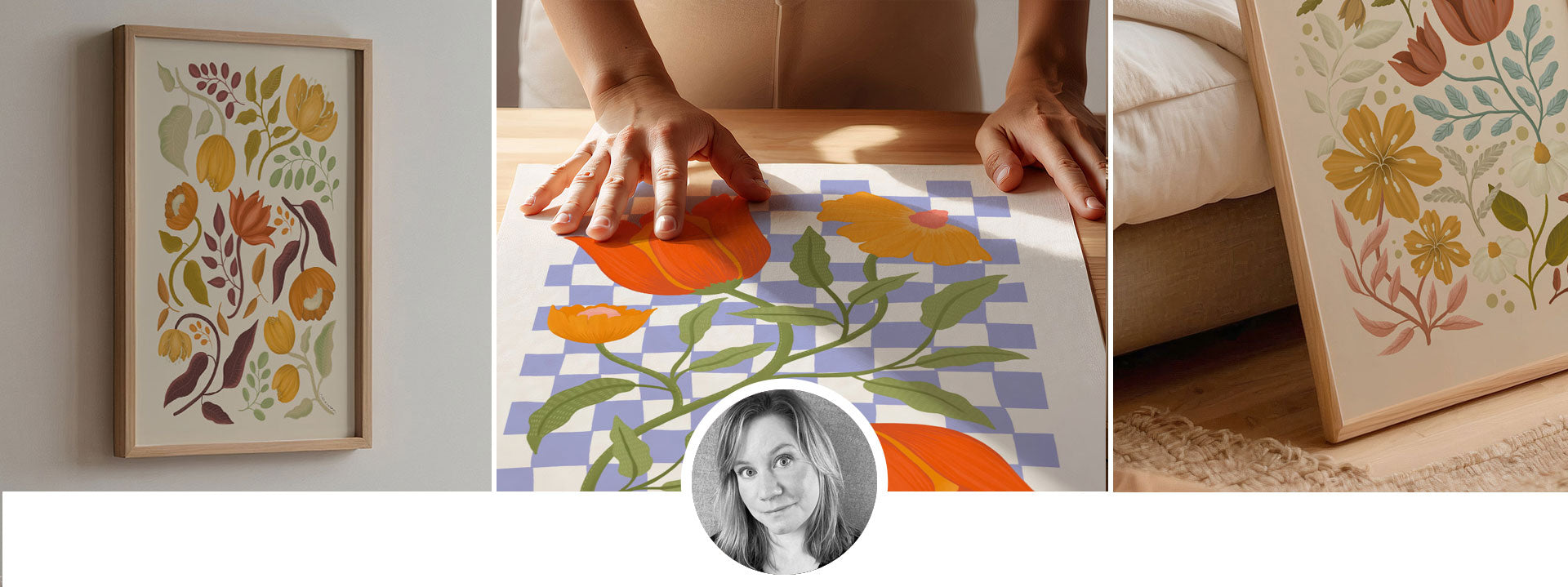 Jag heter Sara och lever ett liv fyllt av skapande. Till vardags jobbar jag som bildlärare - ett yrke där jag får följa ungdomars kreativa utveckling, vilket är fantastiskt inspirerande. Vid sidan av läraryrket driver jag Rarasaran, där jag skapar illustrationer och mönster för posters, kuddfodral, brickor och andra inredningsprodukter. På kvällarna, när min dotter somnat, kryper jag gärna upp i soffan med ritplattan - mitt sätt att koppla av och få ny energi. Mina verk präglas av blommiga motiv, lekfulla färgkombinationer och en nyfikenhet på bildkomposition.