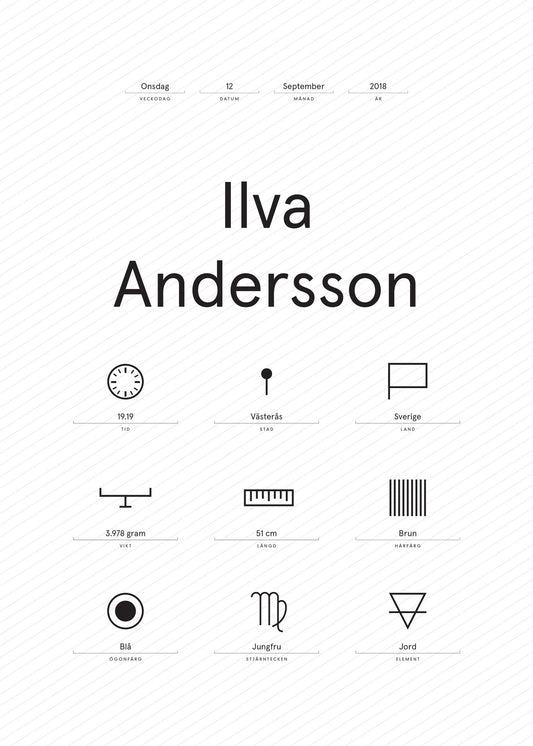 Personalised posters are a perfect gift to give away as a christening/birthday present. These unique and designs are a memory for life and can adorn the walls of the child's room for many years to come. A personal print can be anything from a beautiful illustration with the child's name and date of birth to a detailed birth plan where you can see the child's weight, height and birthplace. There is often also the possibility to add personal details such as favorite quotes, poems or other information that is significant to the family. A personalised print is not only a unique ornament but also a symbolic reminder of the special occasion and a nice gift for parents. Giving a print as a christening or birth gift is a way to show care and appreciation for the new family member. It is also a gift that is guaranteed to be used and appreciated for many years to come. With us you can find posters in the form of birth posters, name plates, zodiac posters and other fun. Usually suitable for children's rooms but can of course be tailored to suit anyone and anywhere.