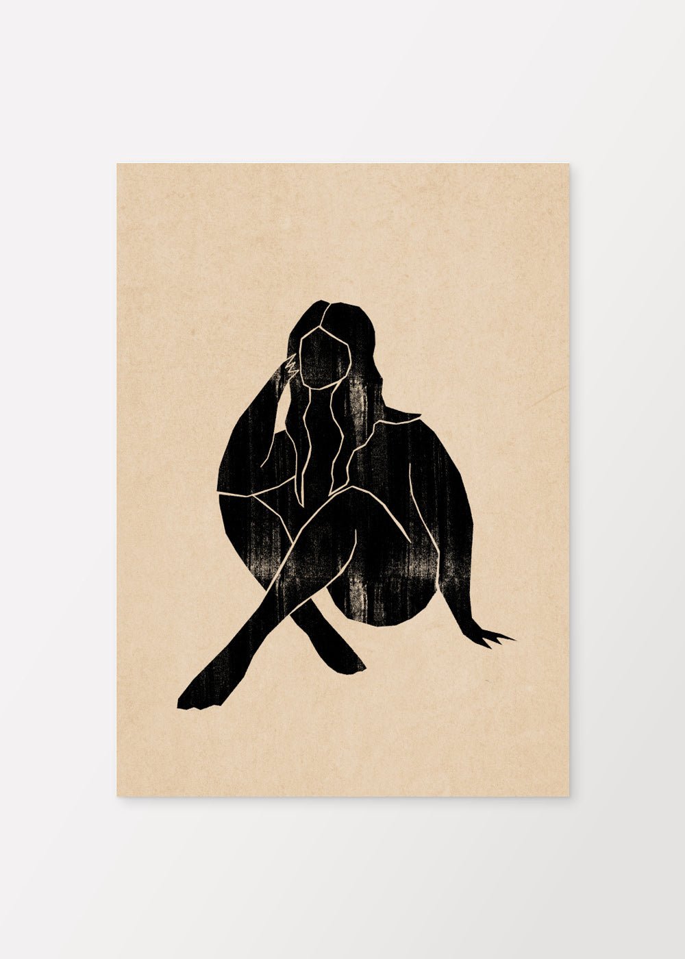 En serie i tre av Anneli Andersson. Kvinnorna tar form ur en stämpellik teknik. Svarta vackra figurer som passar fint i skapandet av en tavelvägg!