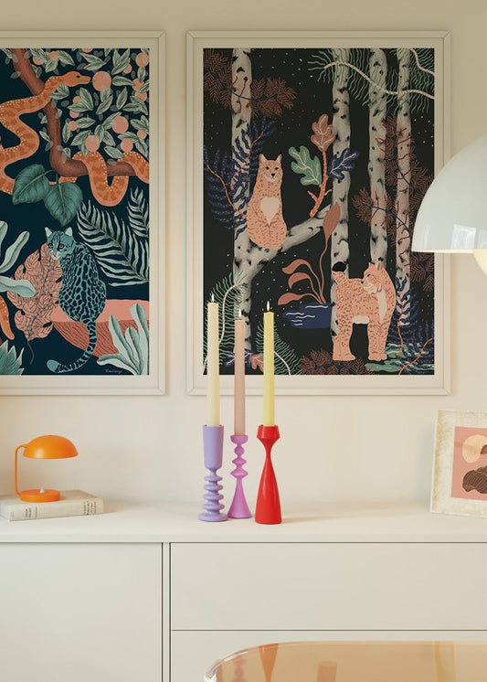 Eläimiä sisältävillä julisteilla voi olla myös opettavainen tehtävä. Riputtamalla kuvia, joissa on eläimiä, voit auttaa lapsiasi oppimaan eri lajeista, niiden elinympäristöistä ja muista mielenkiintoisista faktoista eläinkunnasta. Se voi myös olla hauskaa toimintaa katsoa yhdessä maalauksia ja oppia erilaisista näytteillä olevista eläimistä.