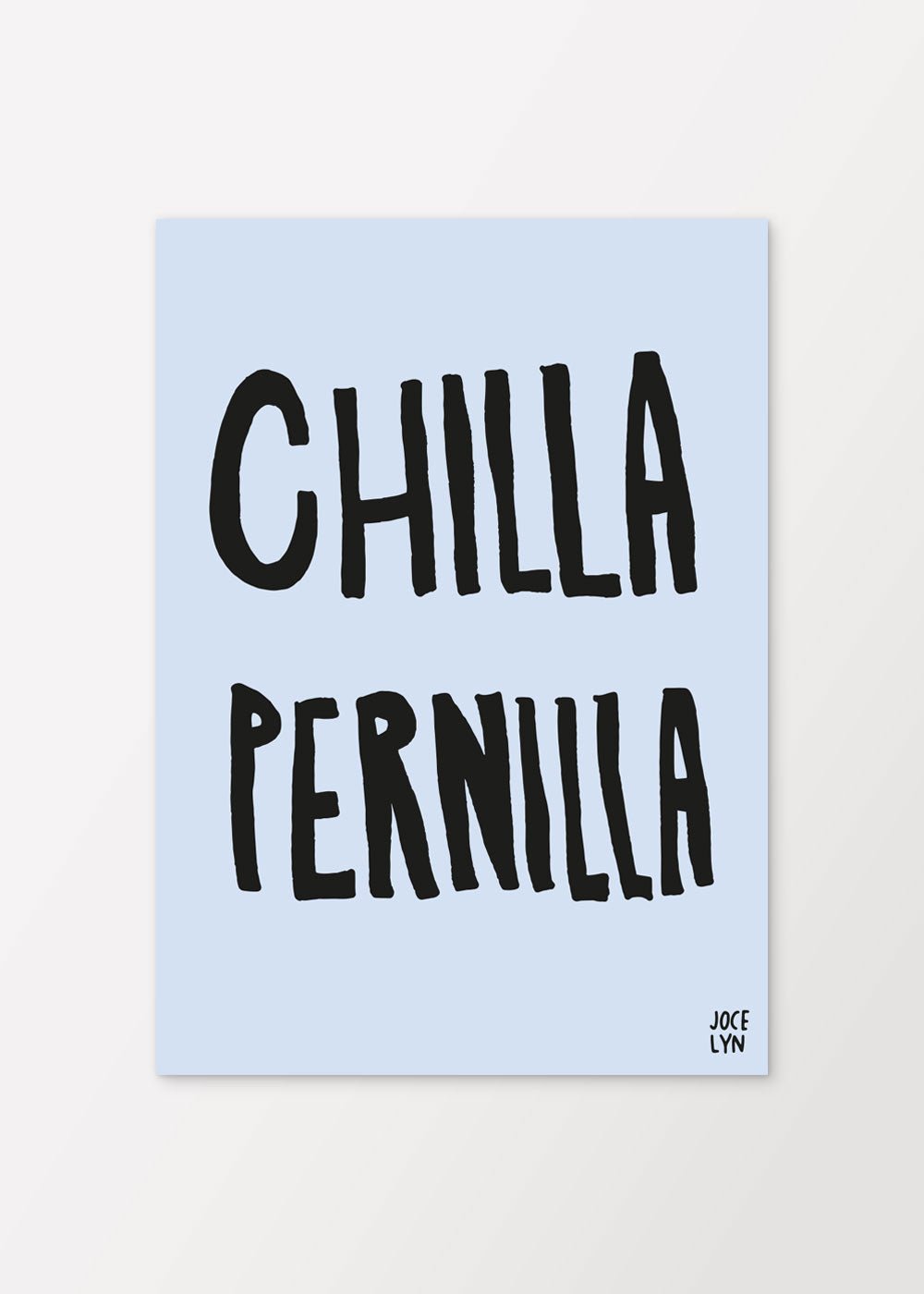 Alla behöver vi ibland någon som säger åt oss att ta det lugnt och den någon kan mycket väl vara den här postern. Chilla Pernilla är både en stilla uppmaning och ett fniss i samma andetag. En titel, en livsfilosofi och ett rim du inte visste att du behövde.